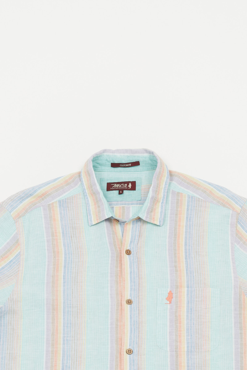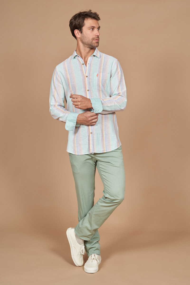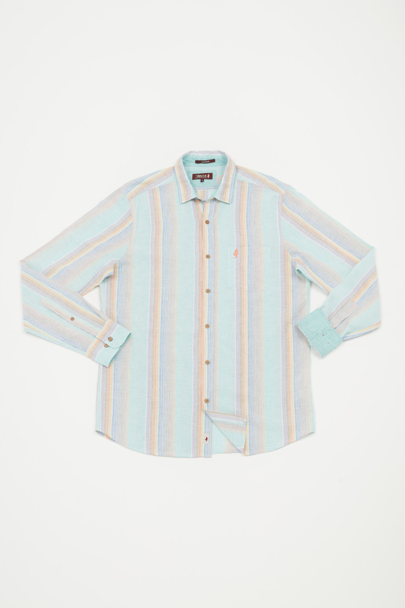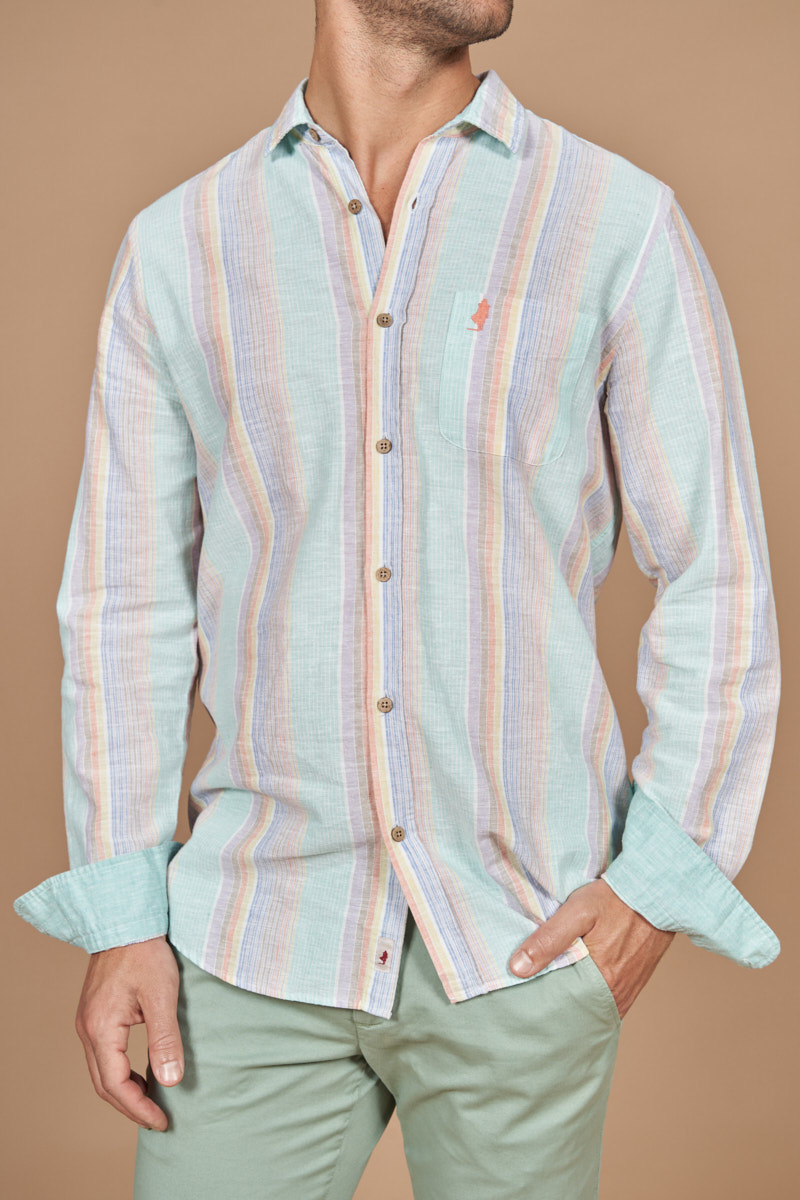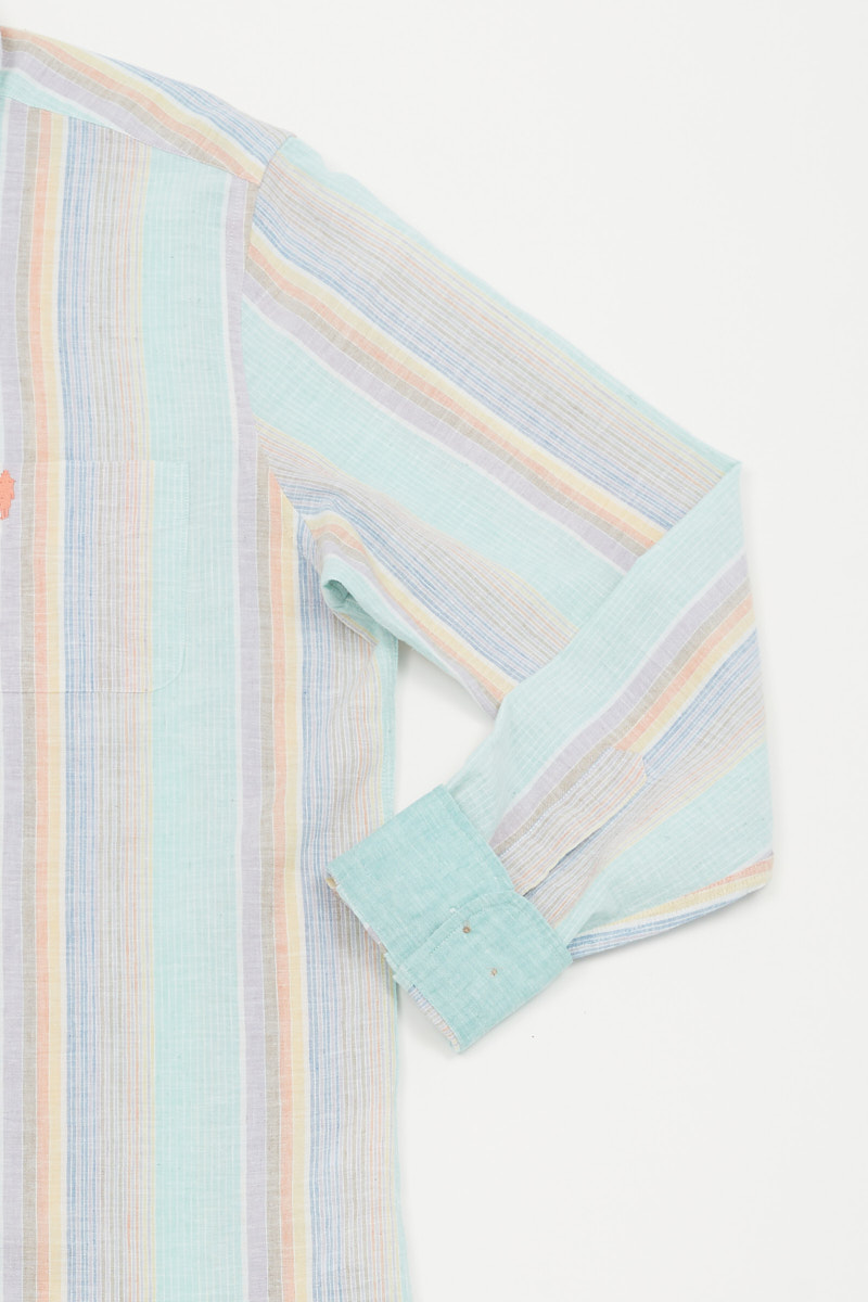 Cotton linen shirt with big colored stripes