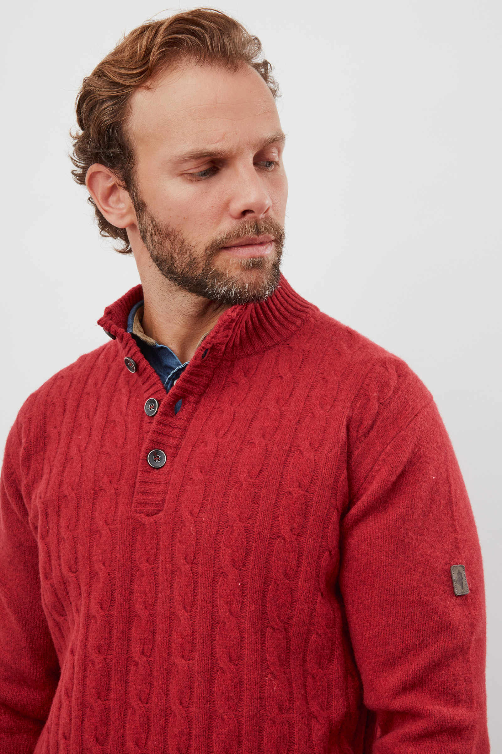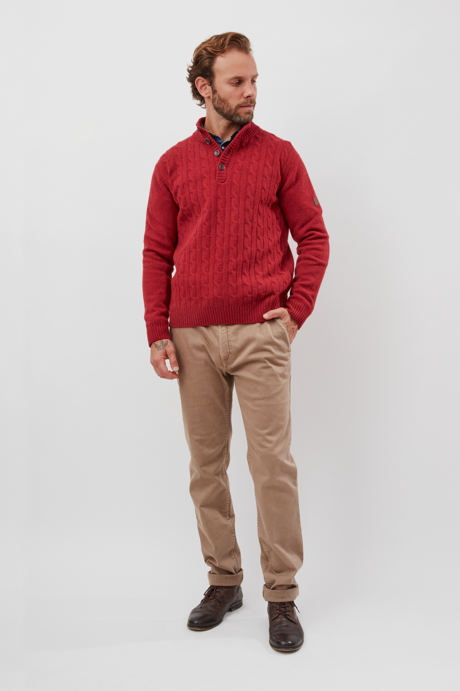 Cable sweater with trucker collar