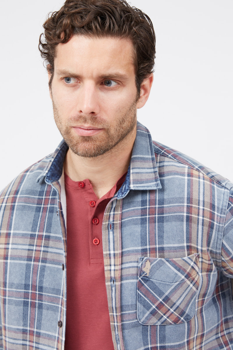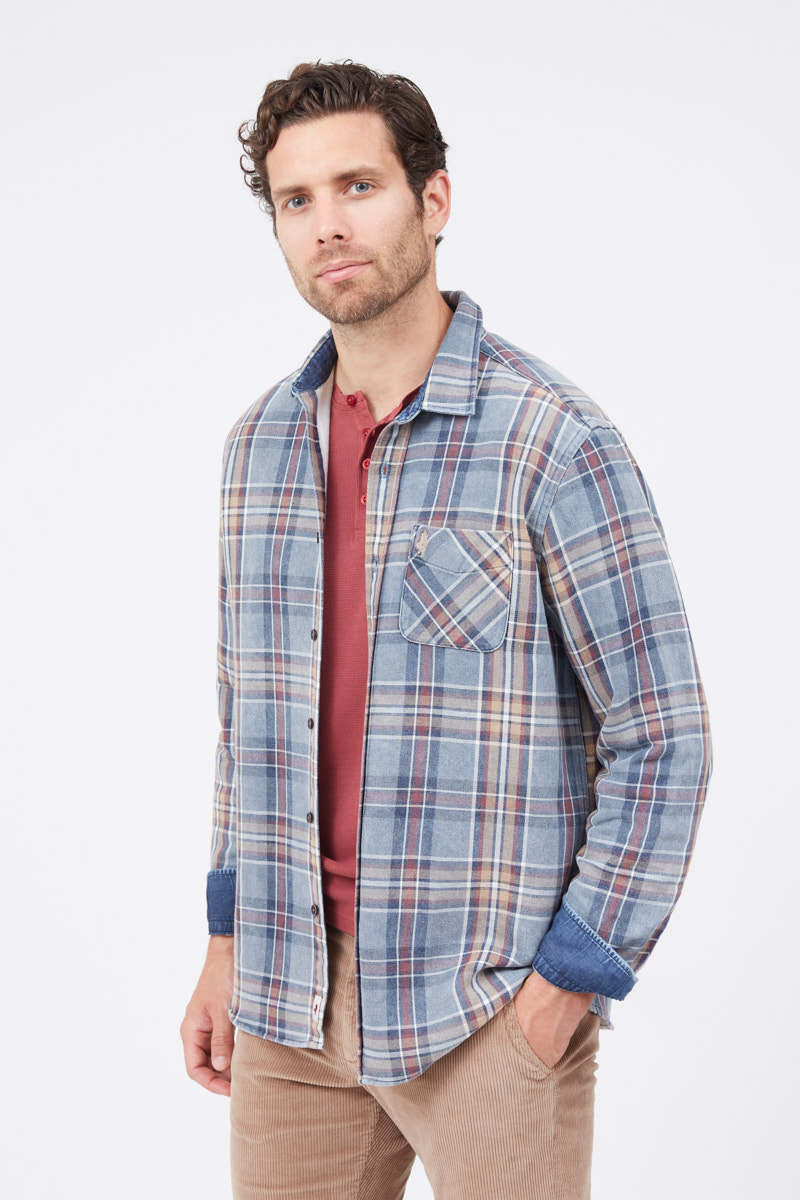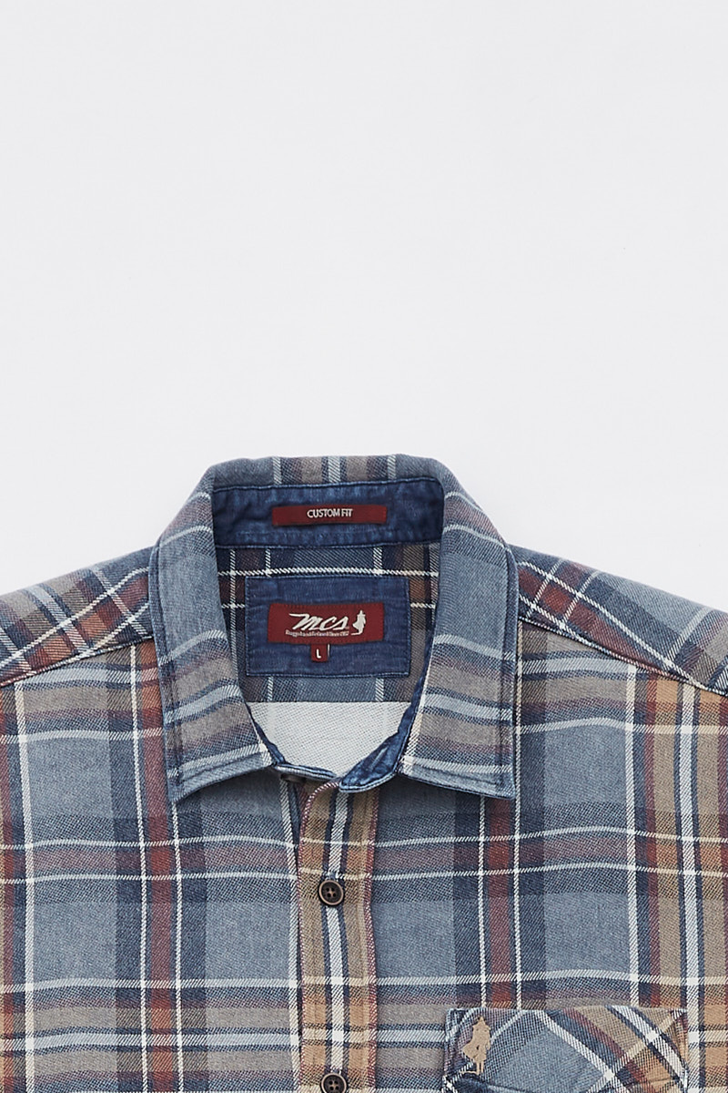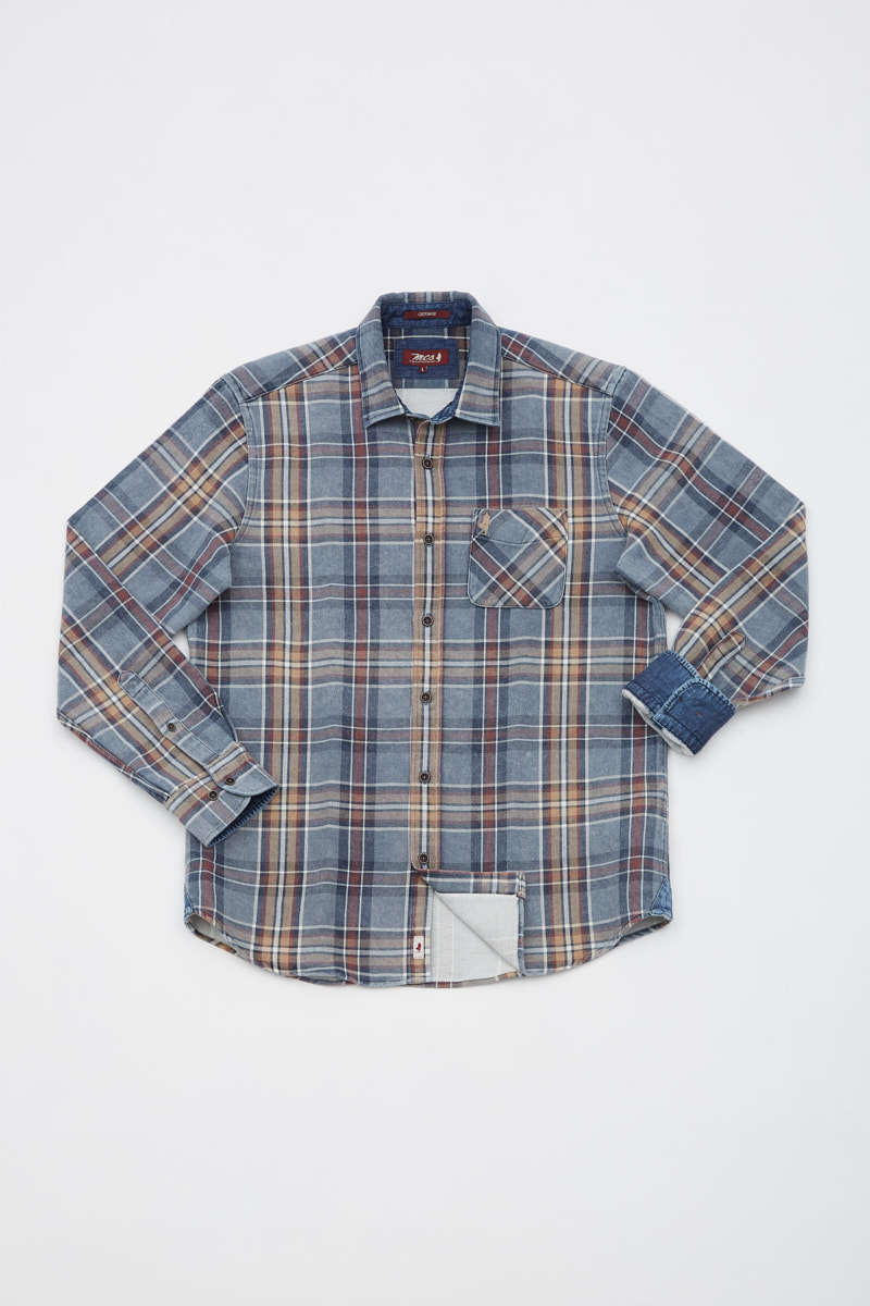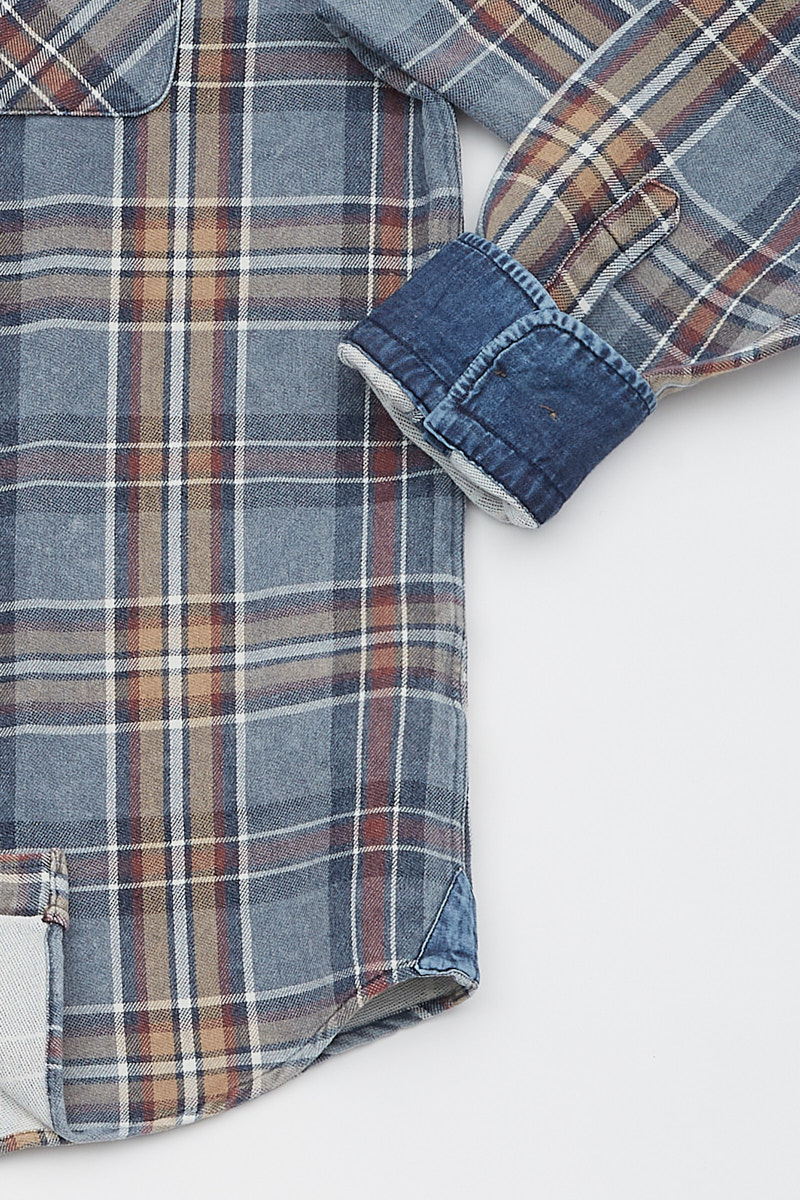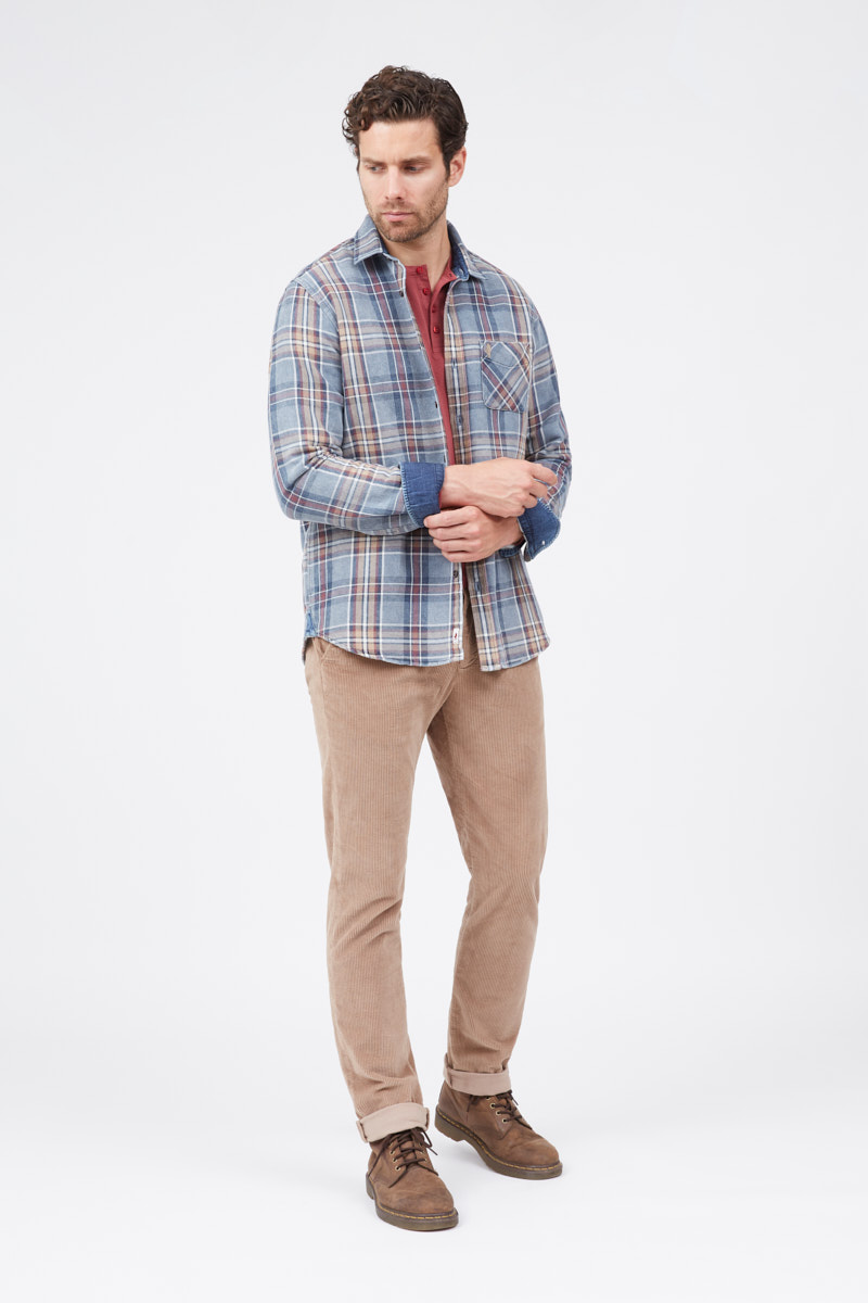 – Under collar, collar band and inside cuff in plain denim fabric.