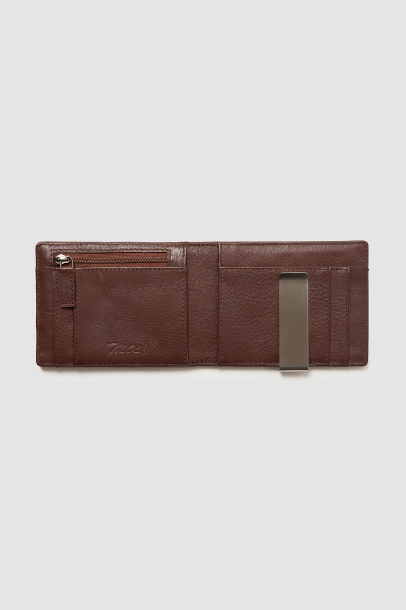 Leather coin purse with zipped pocket