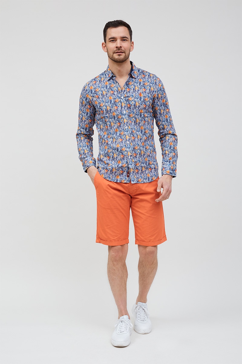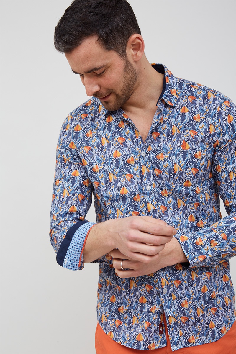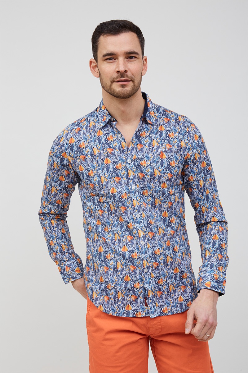Long-sleeved floral-print cotton voile shirt