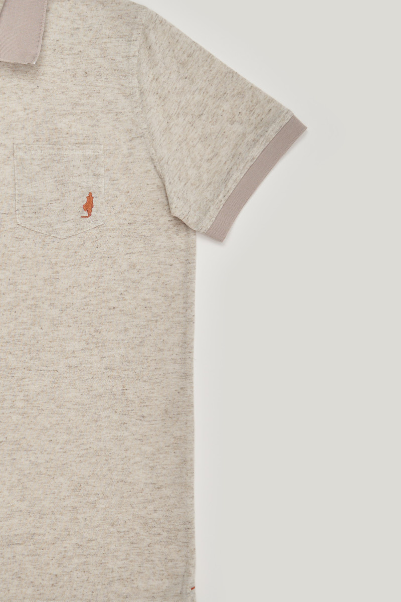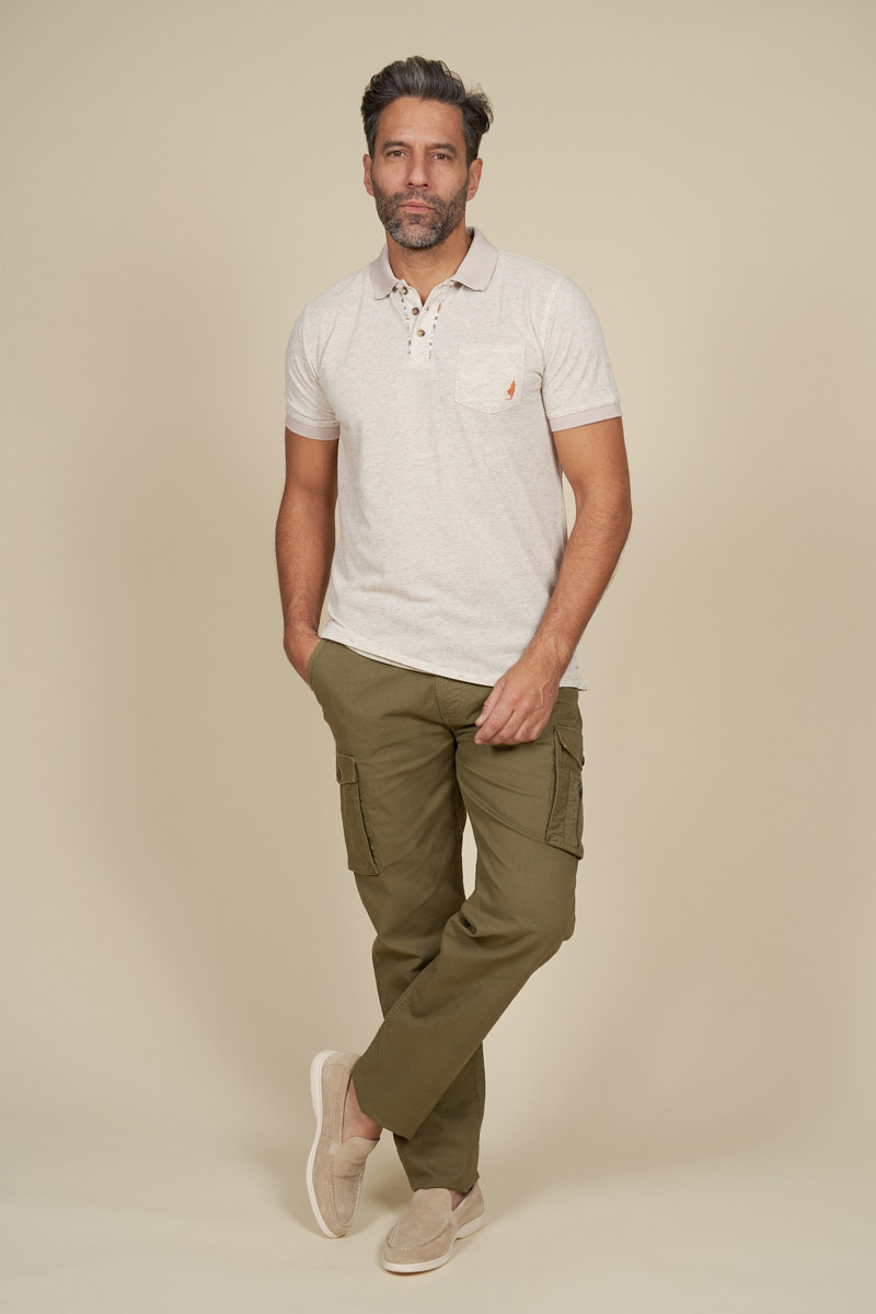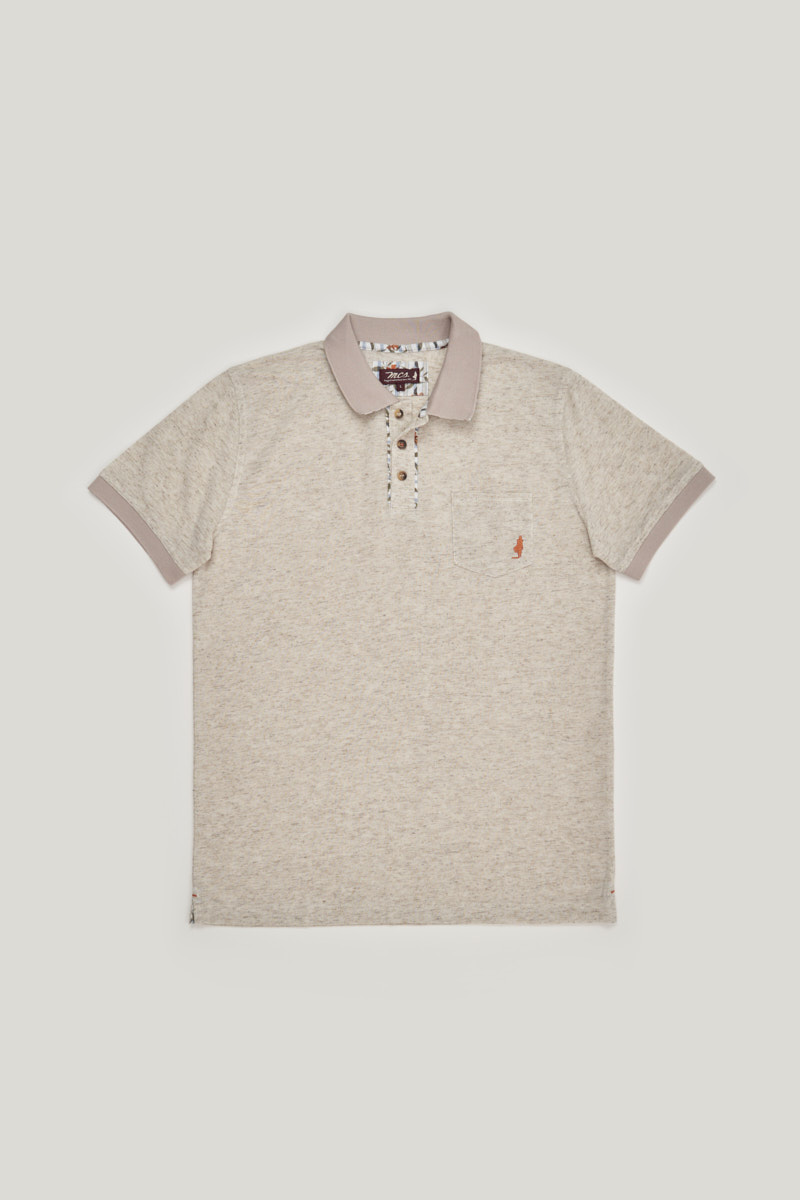 Collar, under collar, inside and outside band of collar, buttons tab and buttonhole tab and pocket in contrasted fabric