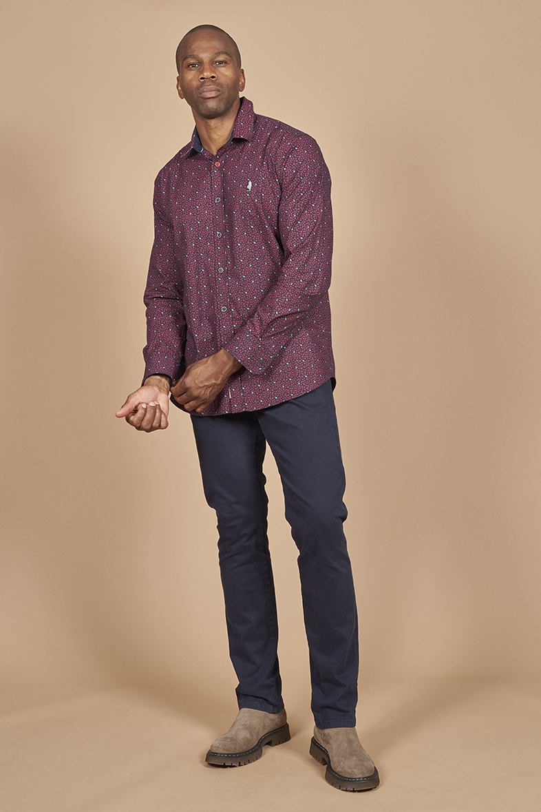 – Under collar, collar band and inside cuff in printed fabric
