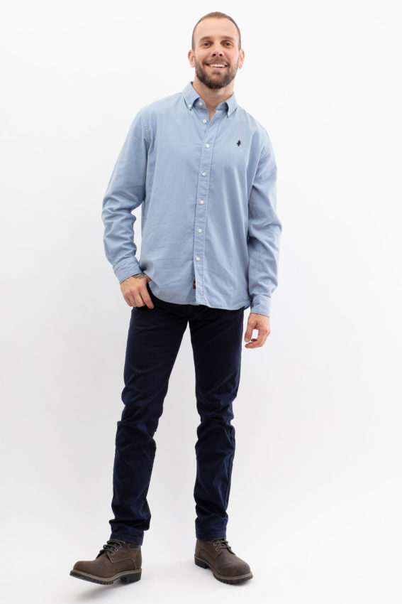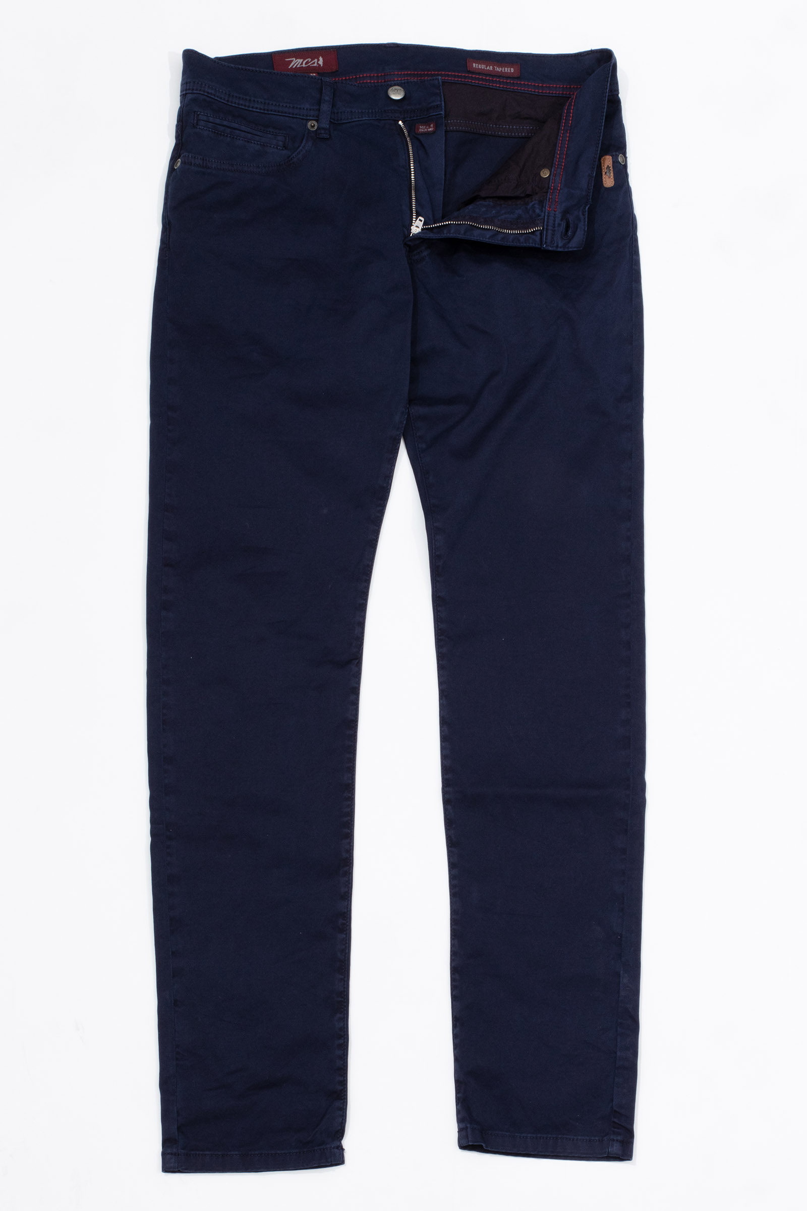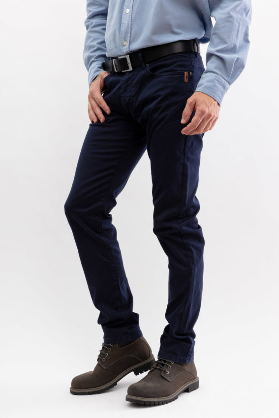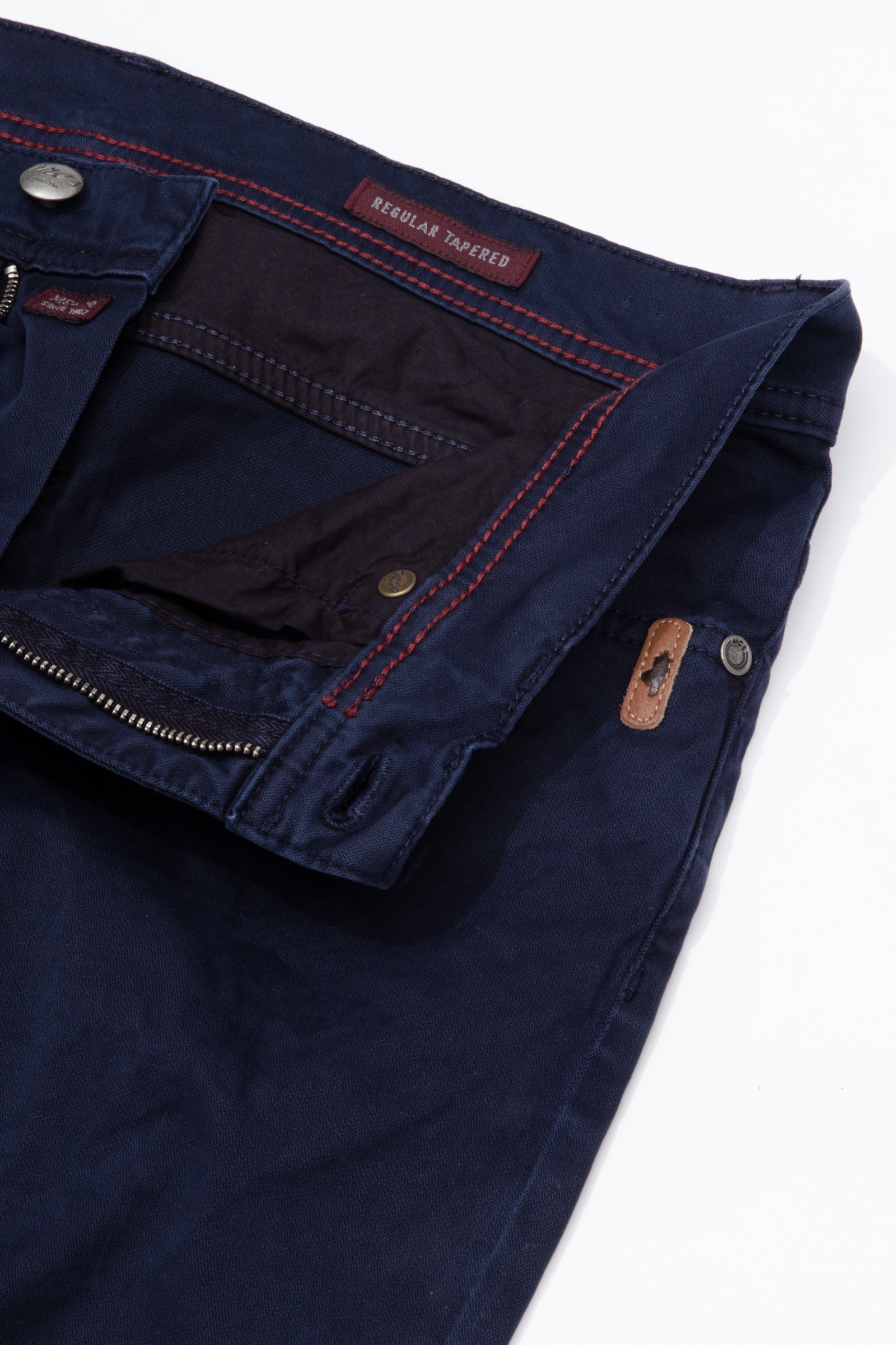 Regular Tappered five-pocket trousers with micro-herringbone stretch woven cotton