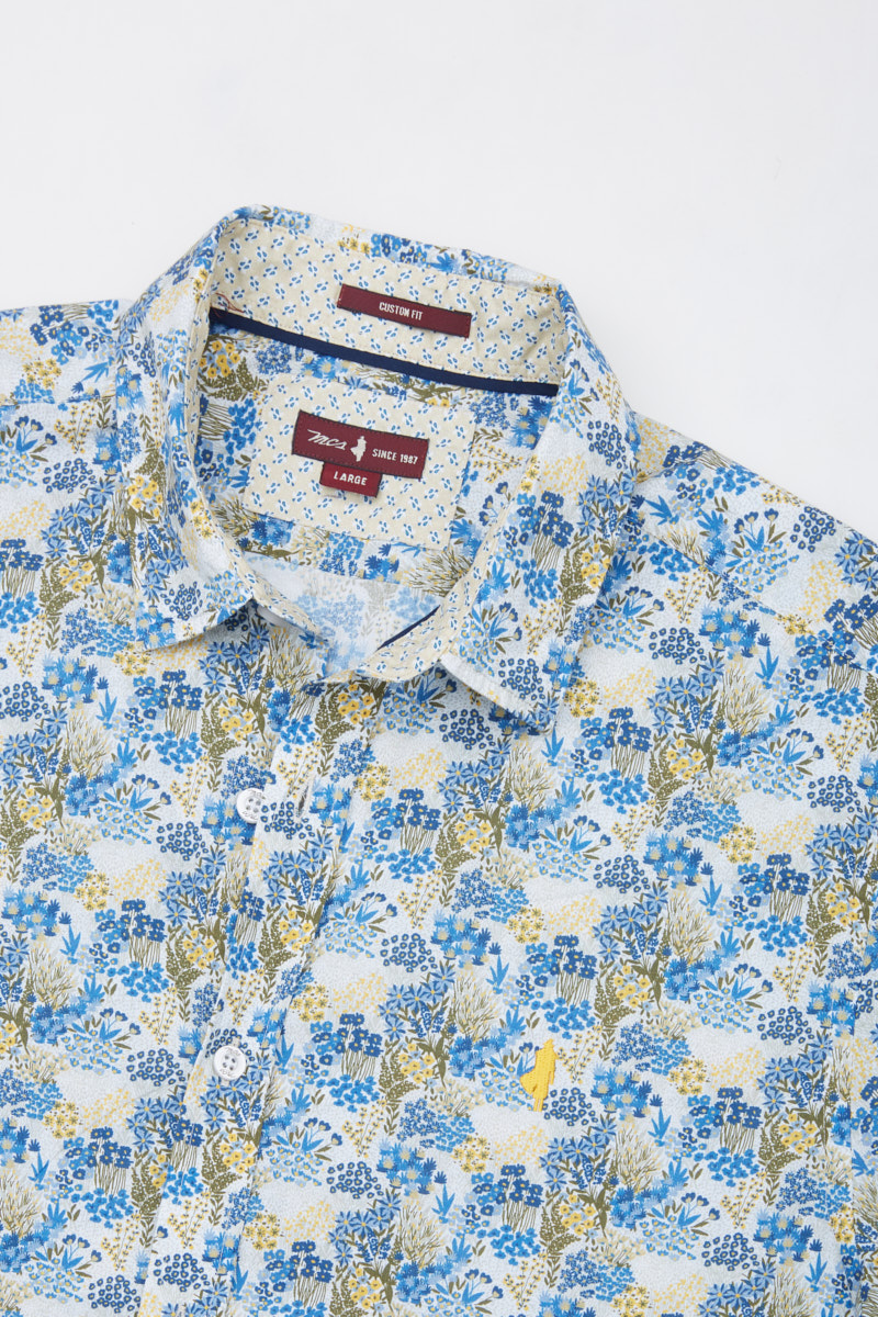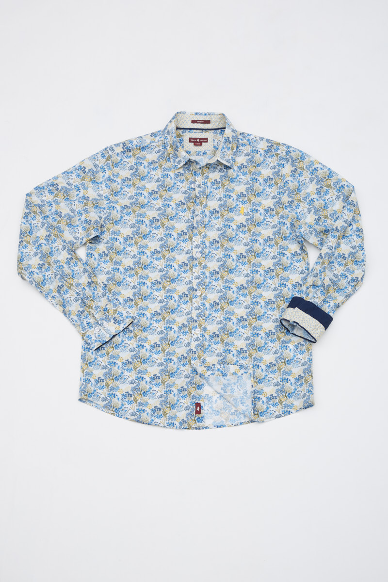 – Printed contrasted inside collarband, under collar and cuffs