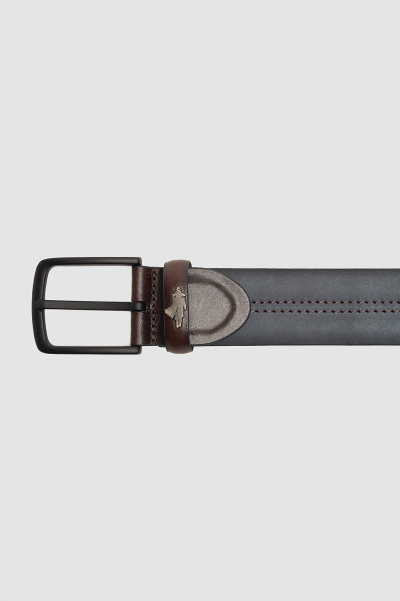 Ceinture en cuir avec double surpiqûres contratsées au centre