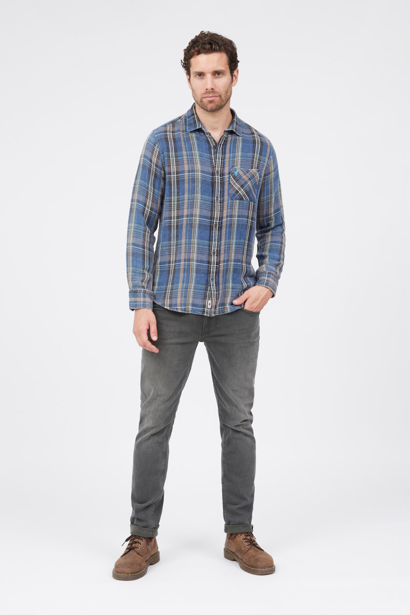 – Sous-col, bande de col et intérieur poignet en denim uni