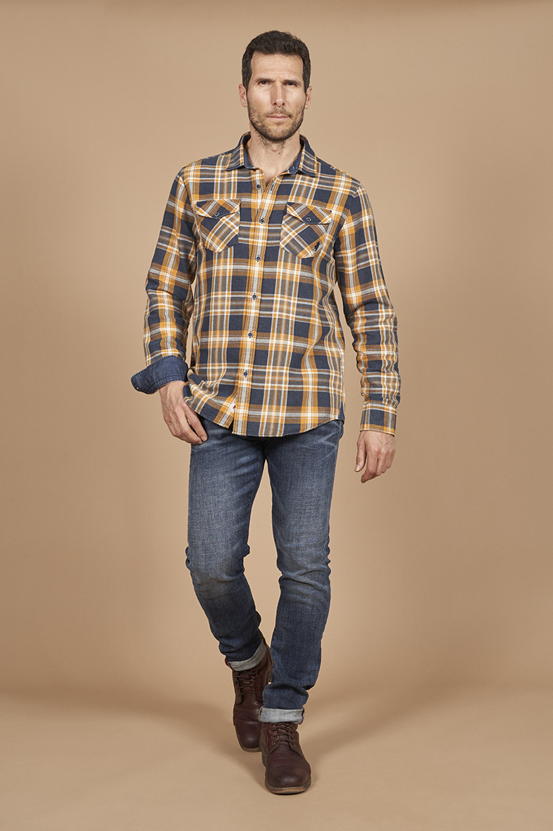 – Sous-col, bande de col et intérieur poignet en denim uni