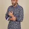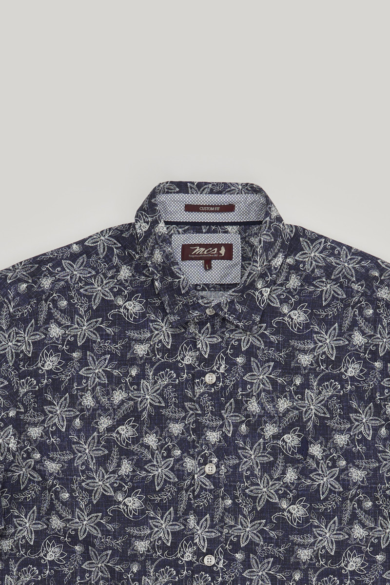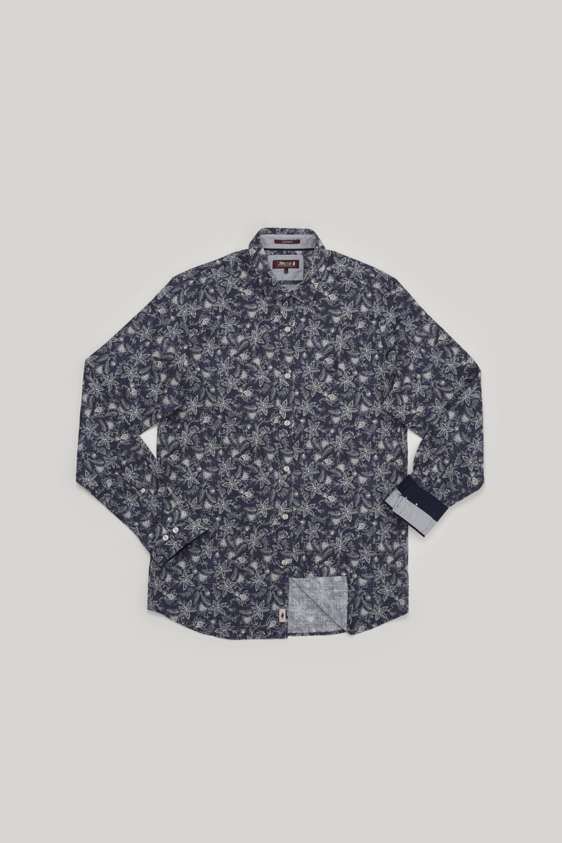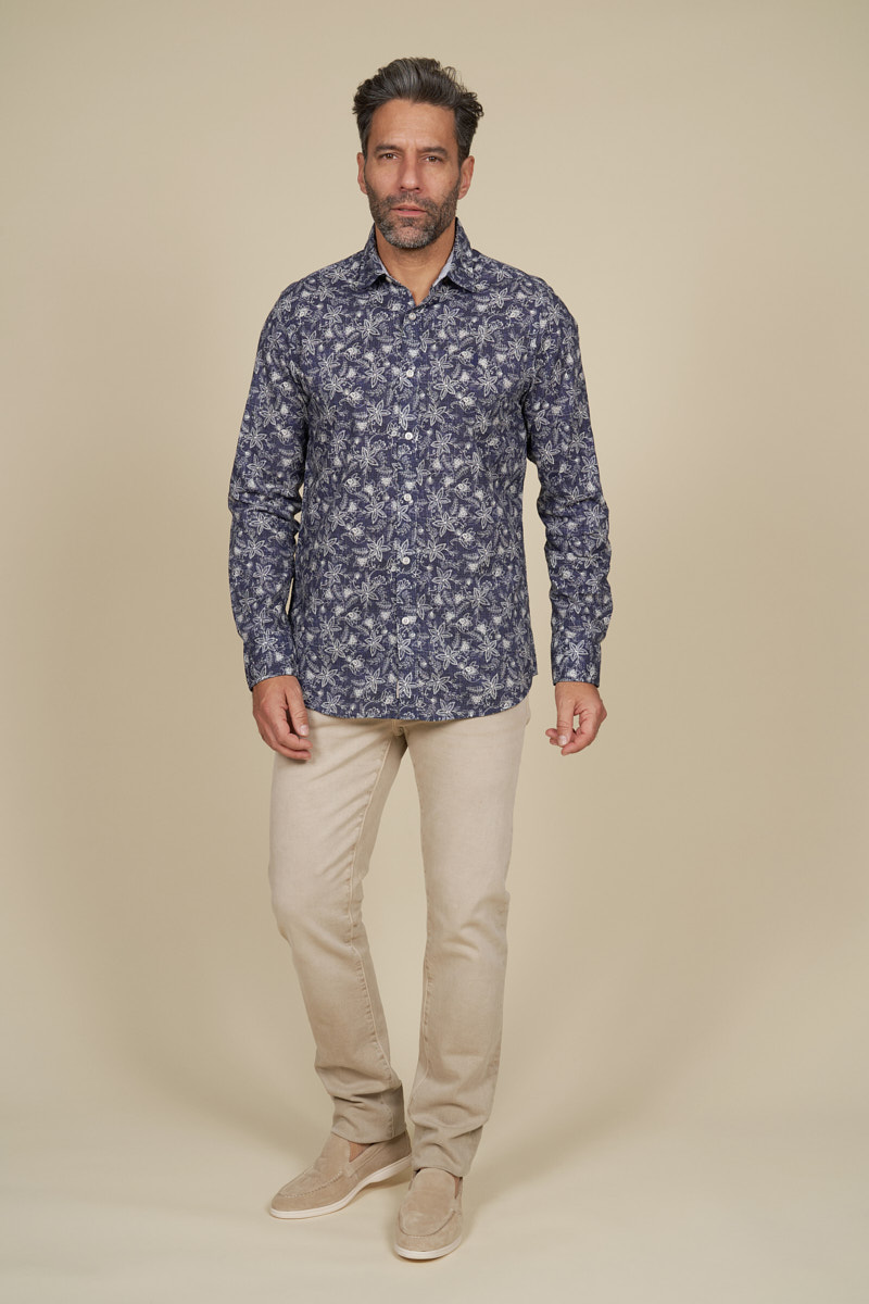 Chemise en coton flammé imprimée avec des motifs fleurs