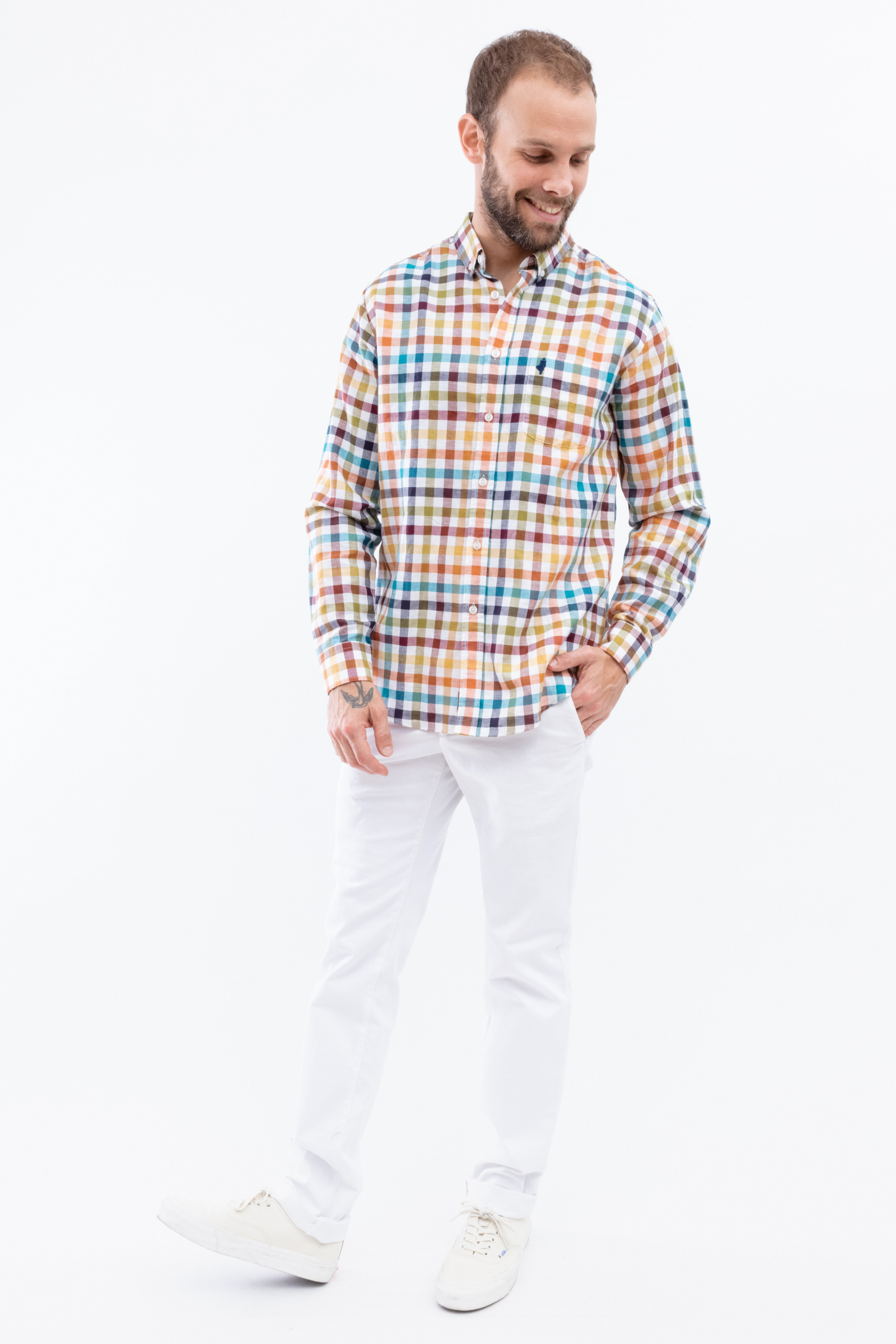 Chemise manches longues à carreaux coton