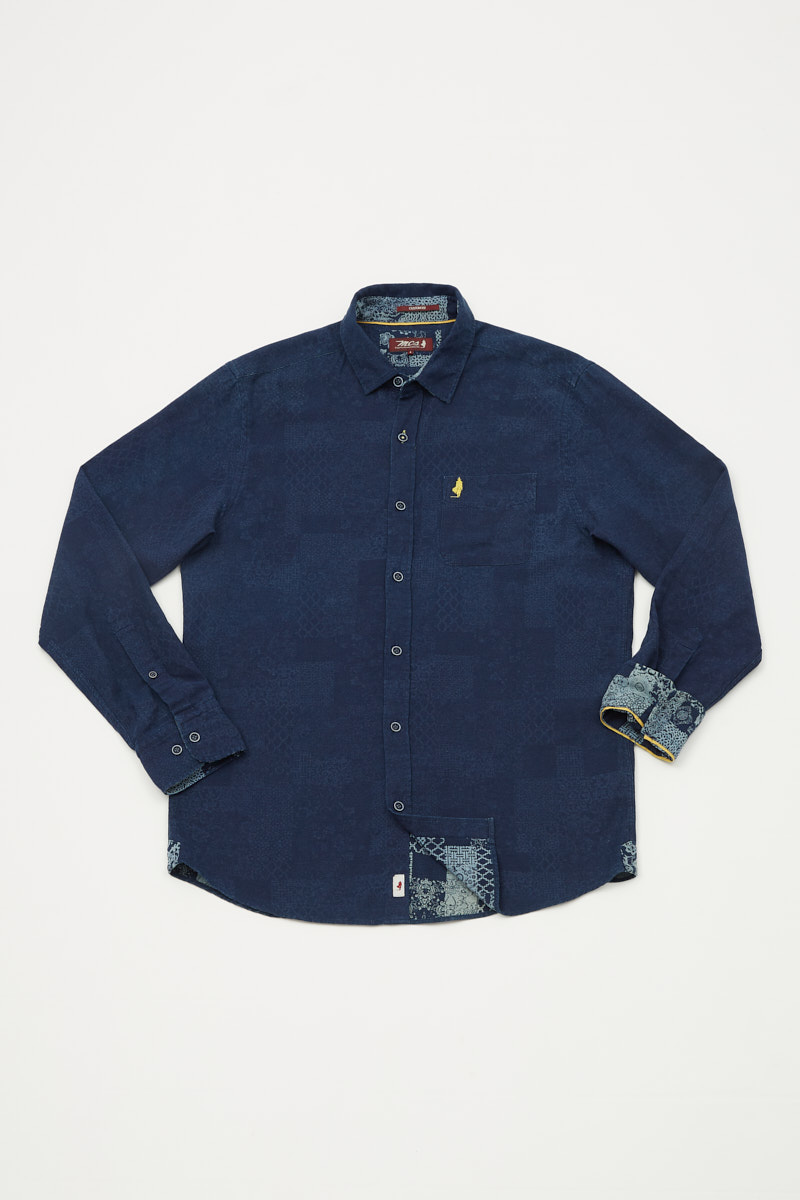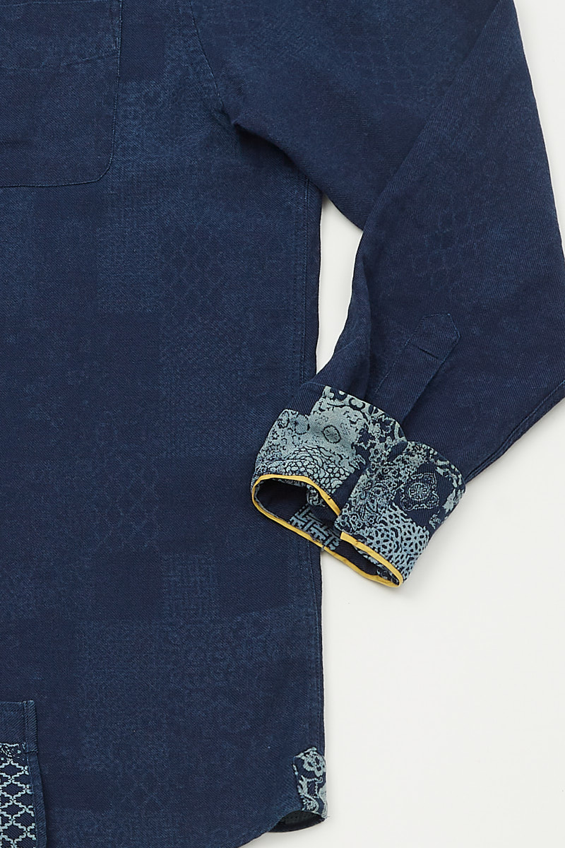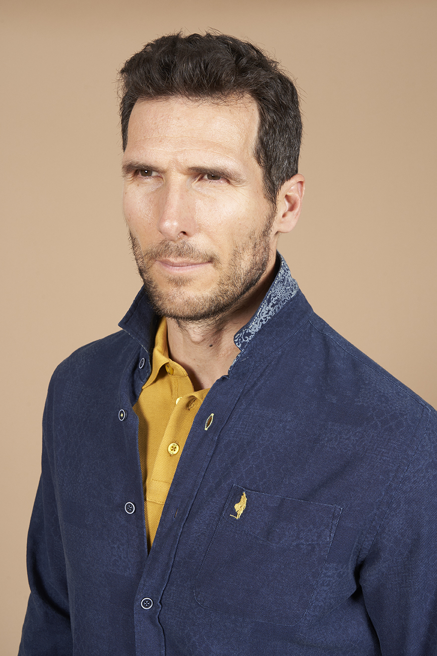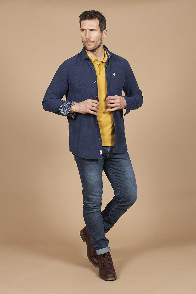 – Sous col, bande de col et intérieur poignet en tissu contrasté