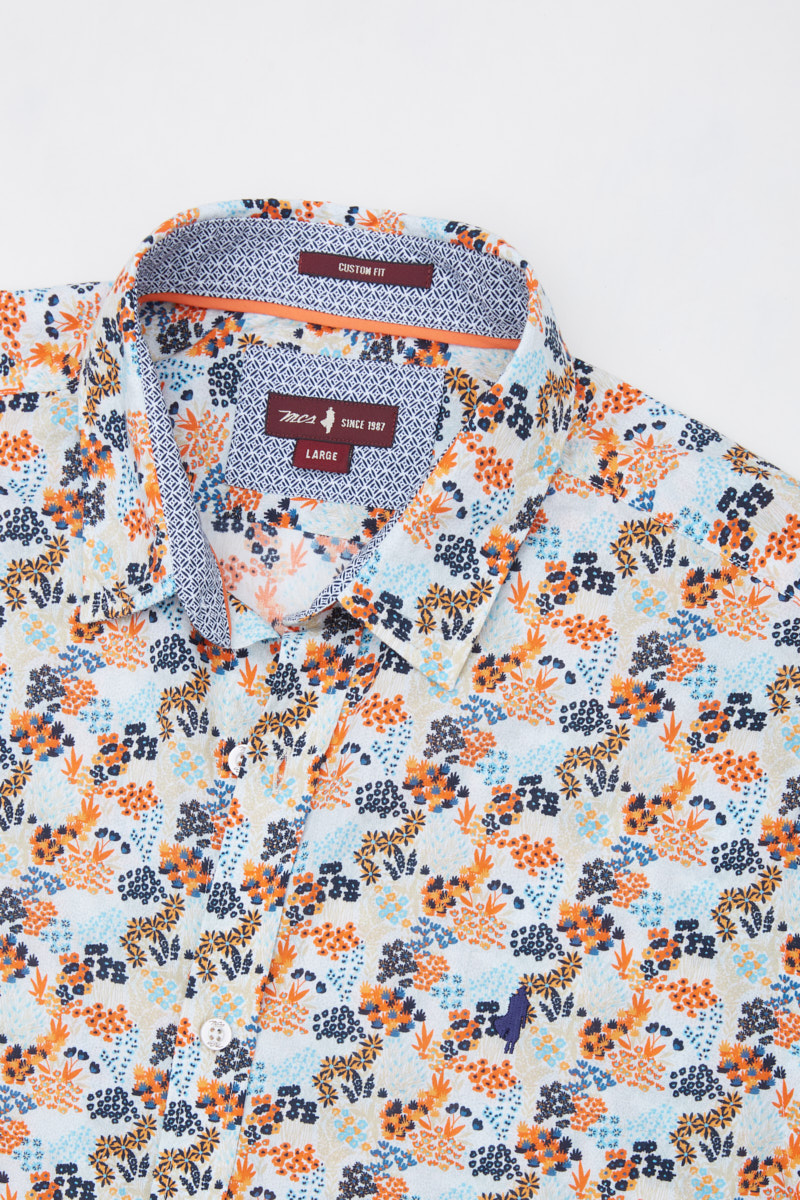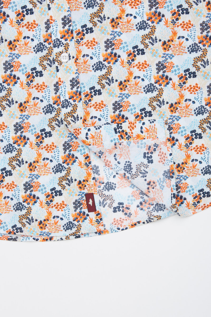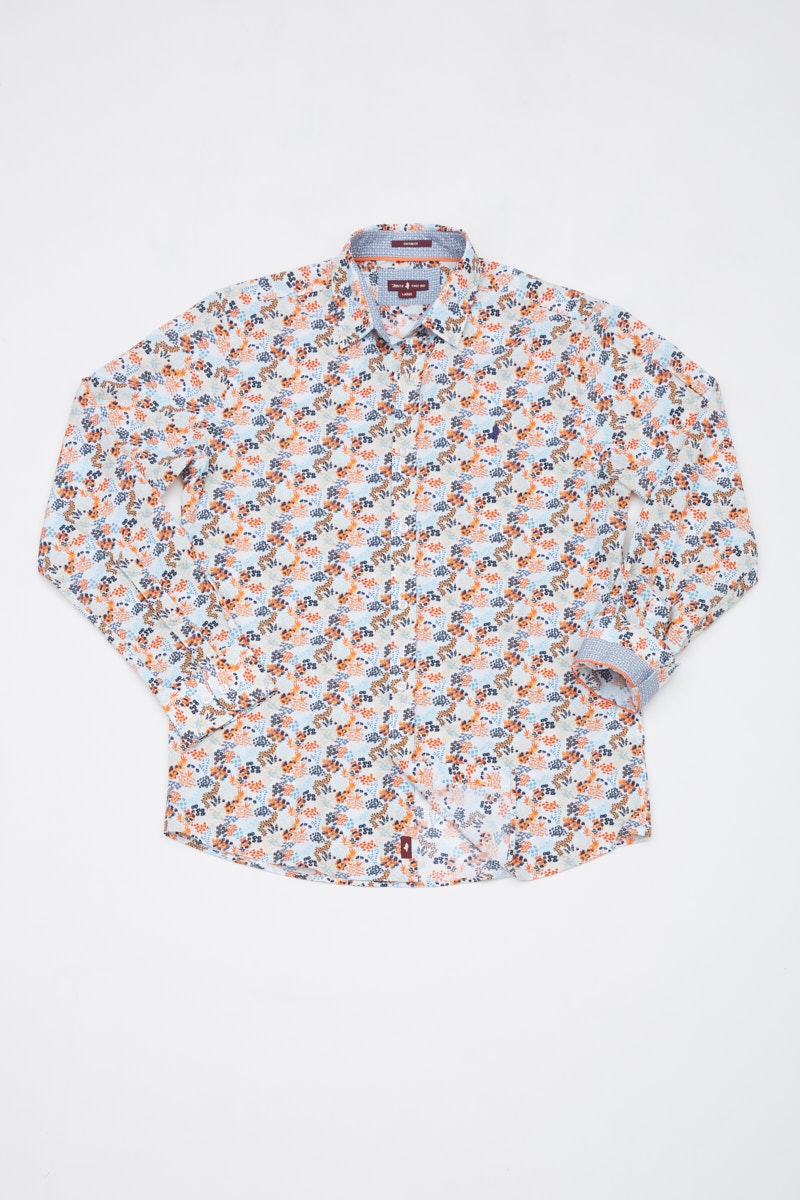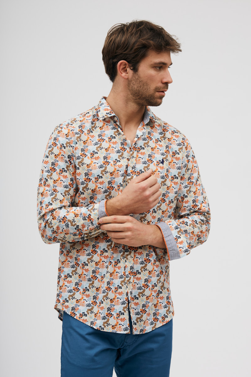 – Intérieur pied de col , dessous de col et intérieur poignets en tissu imprimé contrasté