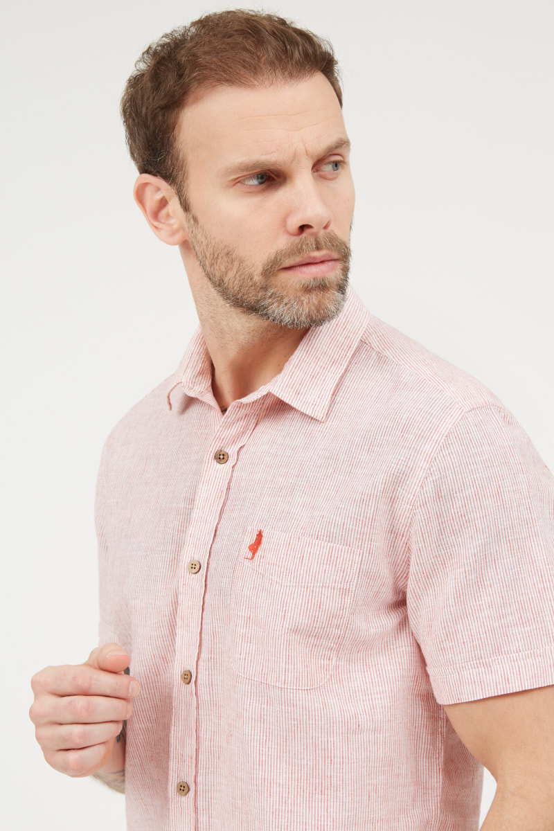 Chemise manches courtes en lin à rayure :