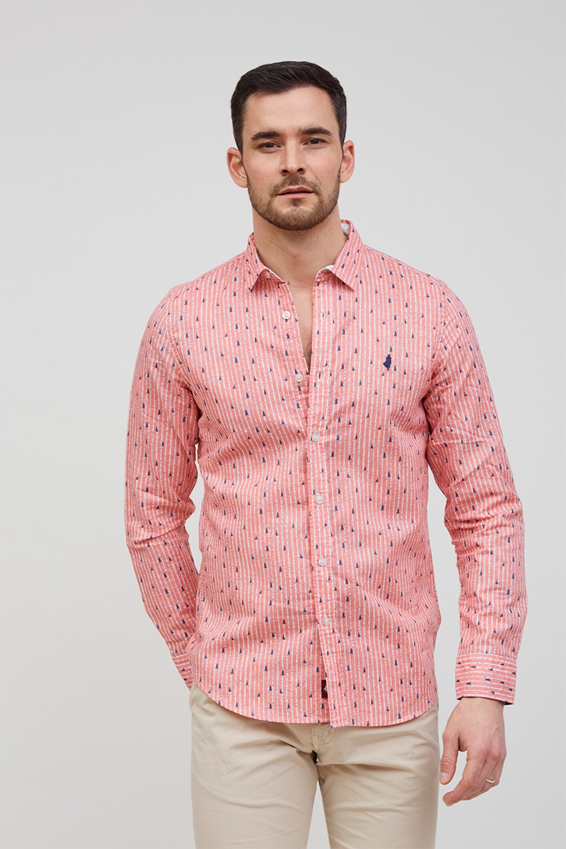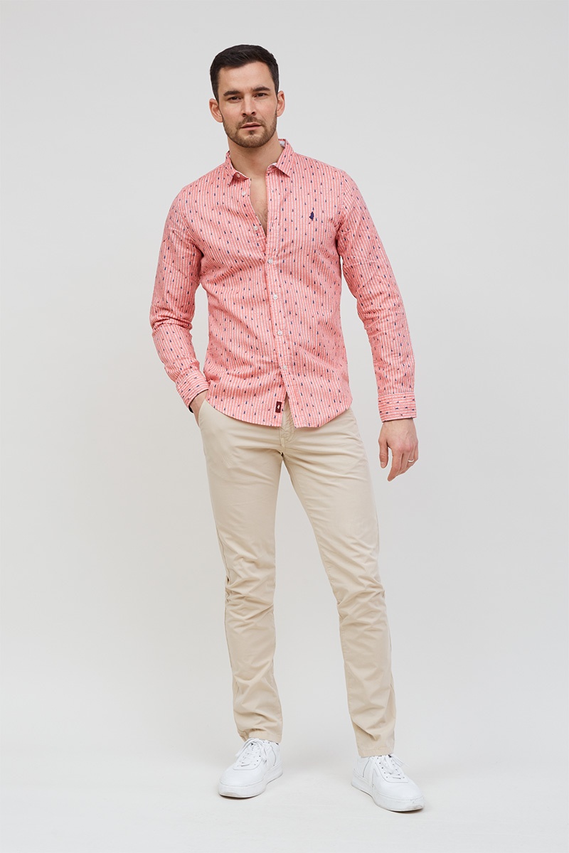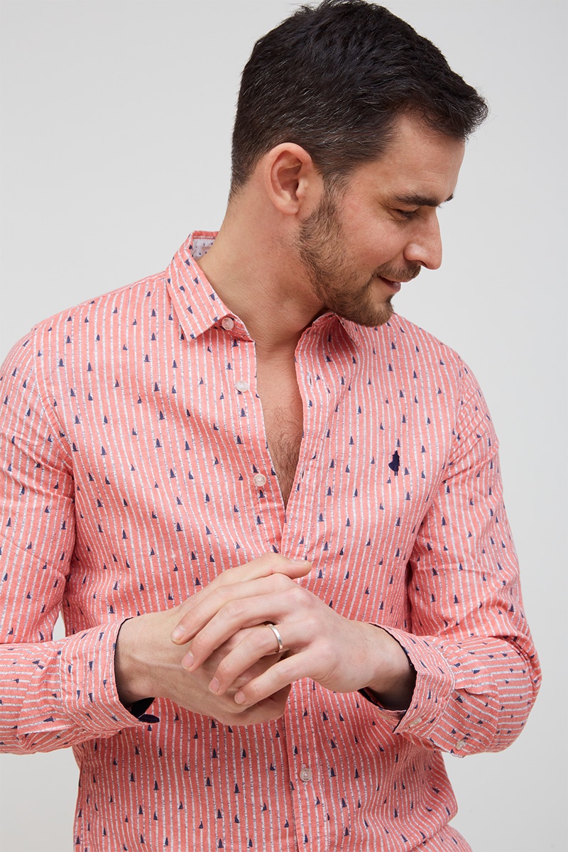 Chemise rayures micro motif contraste