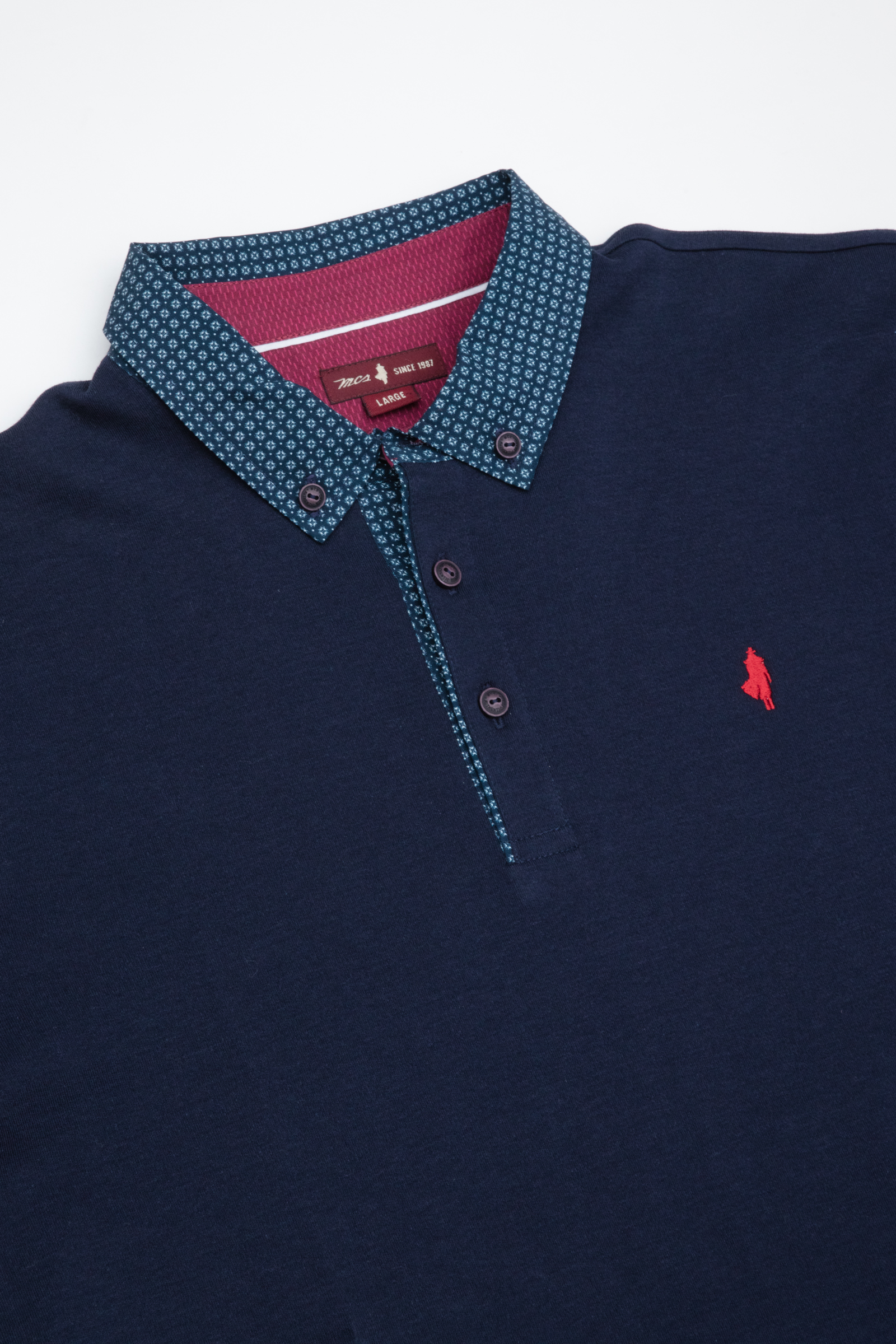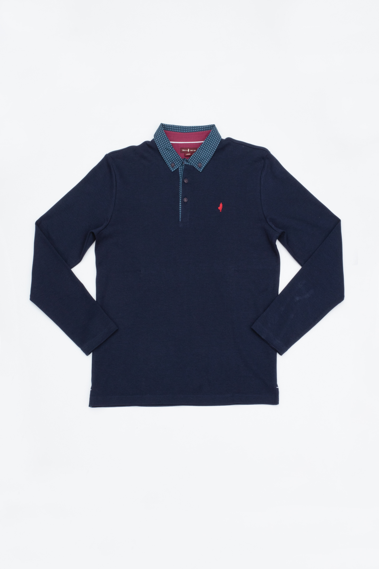 Polo uni manches longues avec un col à motif