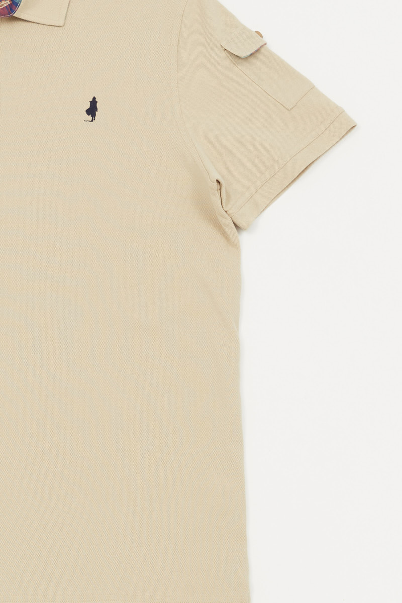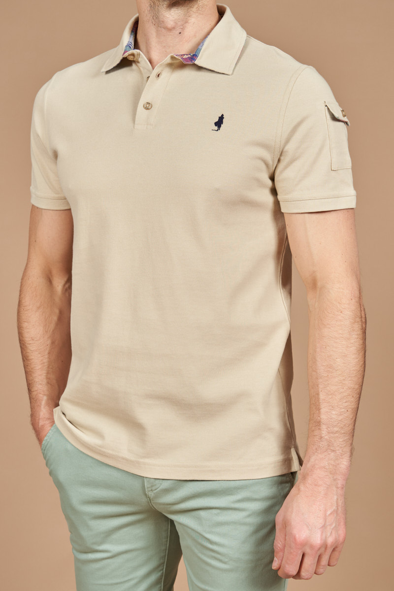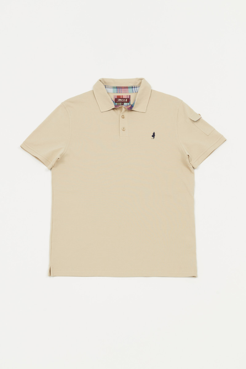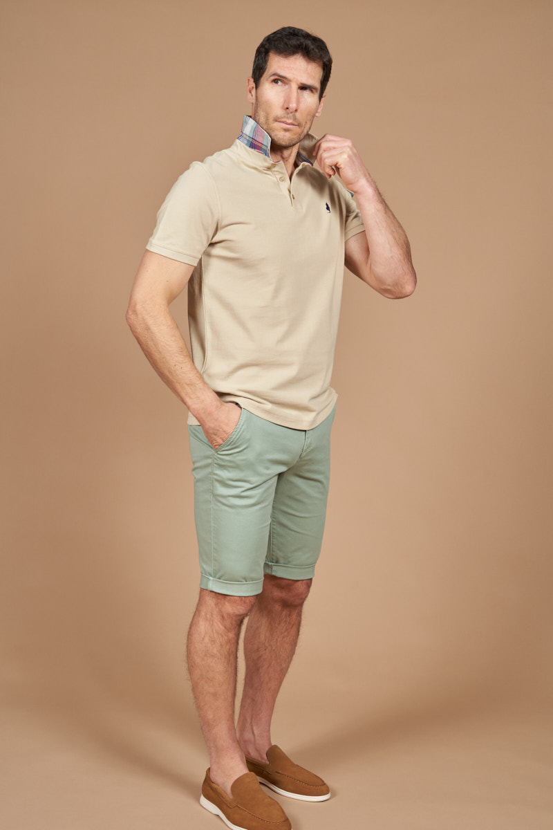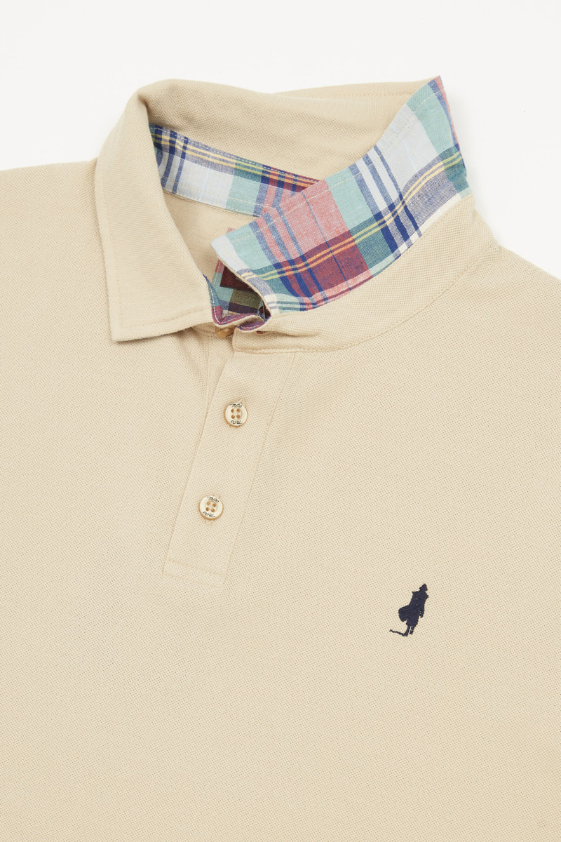 Tissu à carreaux sous le col, dans la bande de col et sous le rabat de la poche sur la manche